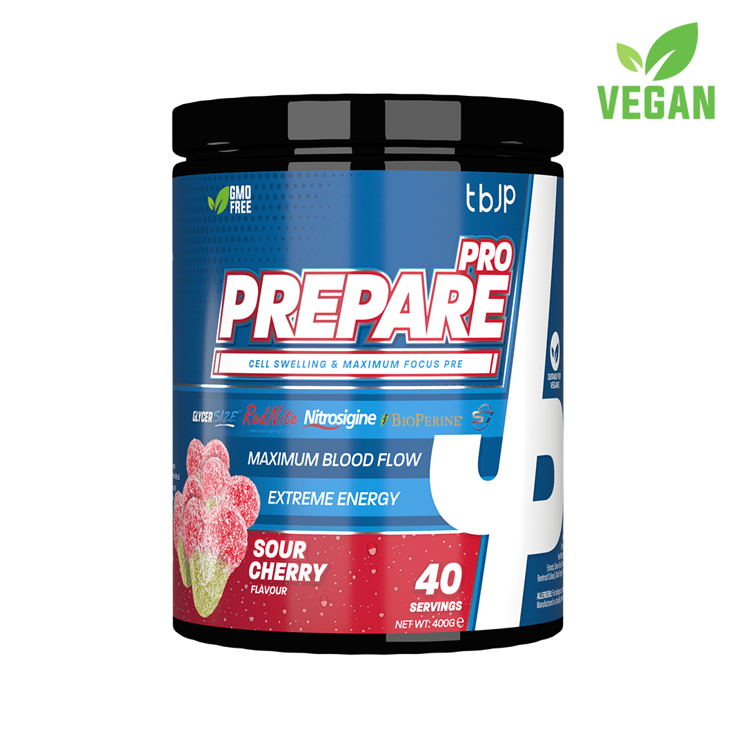 PREPARE PRO is TBJPs all-in-one cell swelling & maximum focus pre workout, which alongside other ingredients, contains 5 patented raws.